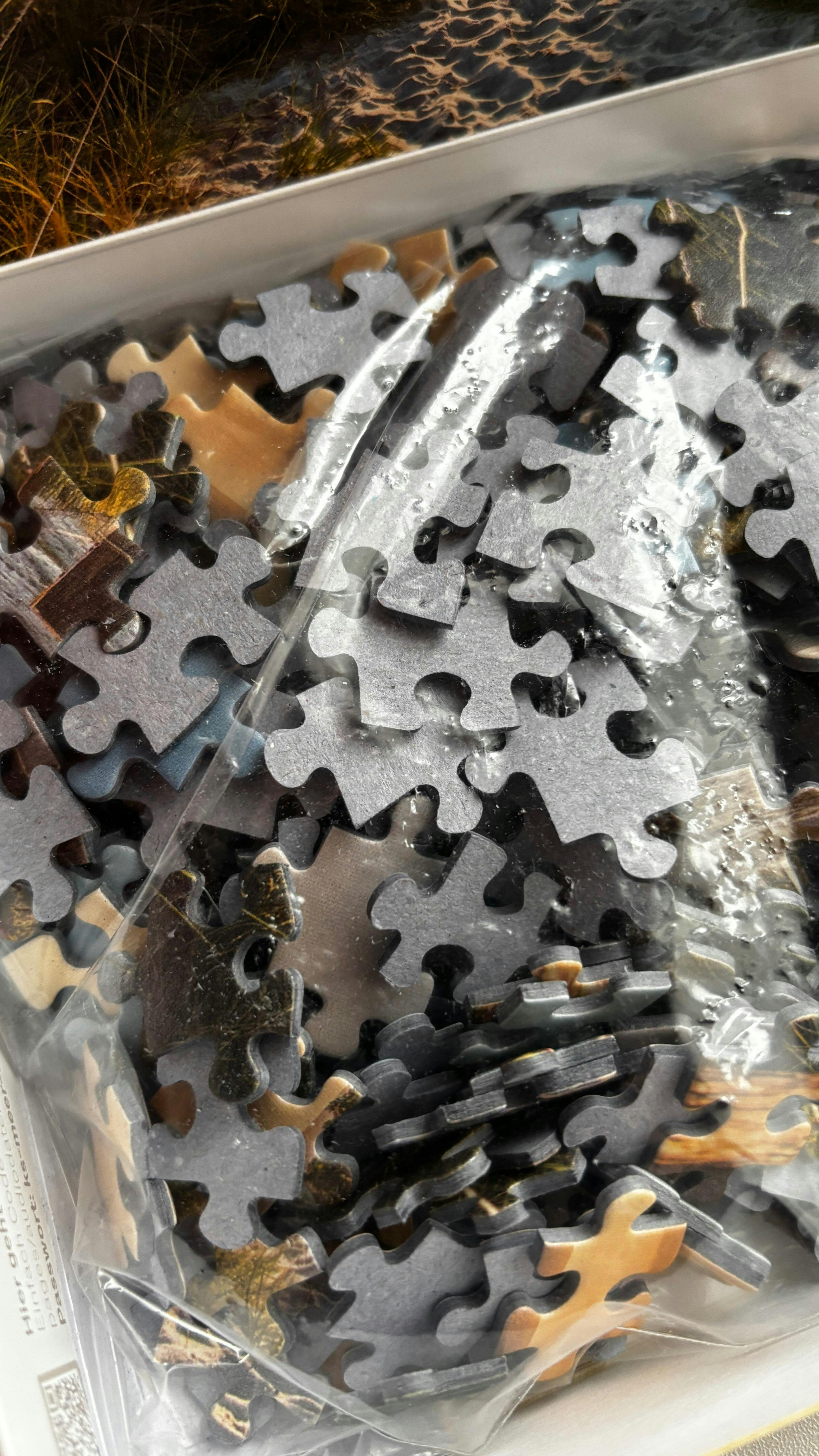 Die Box hat ein angenehmes Format und lässt sich überall gut verstauen. Das Puzzle ist etwas größer als A3 und passt damit in der Regel auf jeden Küchentisch. Die Audios stehen Dir zum Direkthören oder zum Download auf der Website bereit. So hast Du sie immer dabei und kannst sie auch unabhängig vom Puzzle immer und überall nutzen.